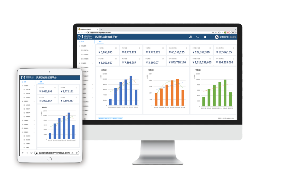 风采供应链管理系统,基于明苑风华多年积累的深厚供应链资源与运营管理经验,由自有技术团队自主开发完成,真正实现了电商终端、仓储、供应商一体化运营,建立起数字化供应链运营管理新模式。